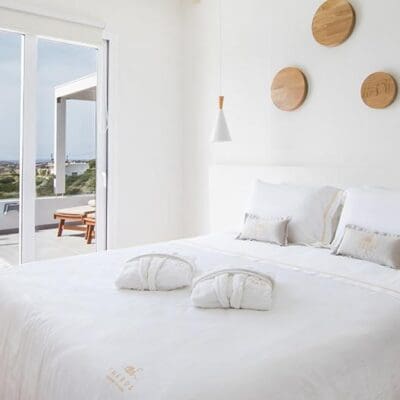 Na de boottrip trek ik mezelf terug in mijn villa. Mijn terras is ruim en kijkt uit over de kalme zee en de ruige bergen van Karpathos. De inrichting van mijn villa is modern en oogt fris door de witte tinten. Door het kleine trappetje loop je zo naar de mezzanine waar het tweepersoonsbed staat. Mijn keuken is ruim en eigenaar Charisios heeft al mijn basis-ingrediënten alvast in huis gehaald. Peper, zout, olijfolie en een aantal kruiden zijn in mijn keukentje te vinden. Hoe fijn is dat? Aan alle kleine details is hier gedacht!