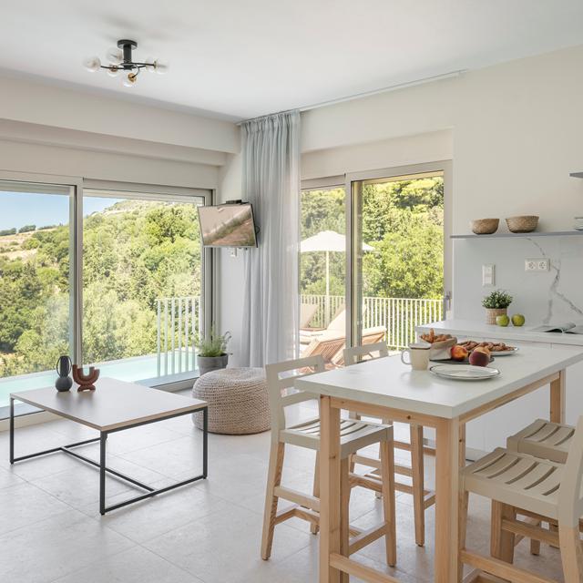 De villa's bieden de perfecte balans tussen privacy en rust tijdens je vakantie in Kefalonia. Dommel heerlijk weg op een luchtbedje in het privézwembad of geniet van het zonnetje op een ligbed. In de villa zelf kun je je goed terugtrekken in de living. Hier vind je een fijne open keuken waar je onder andere de lekkerste ontbijtjes klaar maakt. Verder is het een aanrader om eropuit te gaan en de omgeving te ontdekken. Op loopafstand vind je verschillende restaurants en winkeltjes en ook vind je een van Kefalonia haar mooiste stranden Myrtos Beach op korte rijafstand.