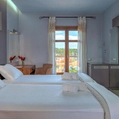 Het moderne Fiscardo Bay Hotel biedt alle comfort die je nodig hebt voor een onbezorgde vakantie. De kamers zijn stijlvol ingericht en beschikken over een eigen balkon. Verkoel jezelf in het zwembad of ontspan op het zonneterras. In het restaurant en de bar kun je genieten van heerlijke lokale en internationale gerechten en drankjes. Het hotel ligt op slechts 200 meter van het bruisende centrum van Fiscardo, waar je talloze taverna’s, winkeltjes en bars vindt. Het strand is ook binnen handbereik, perfect voor een verfrissende duik in de zee.