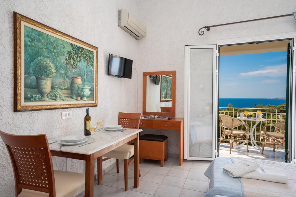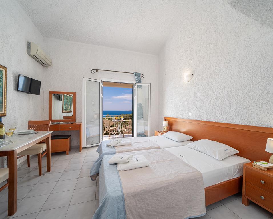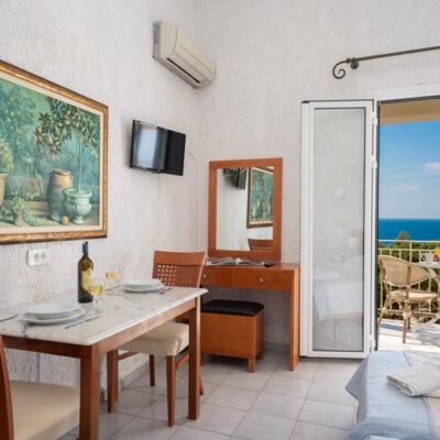 Studios met zee of tuinzicht, Rustige omgeving, Hier geniet je van jouw vakantie, Dicht bij restaurants en cafés, In de buurt van de Caretta Caretta-schildpadden, Op 400 m van het Makris Gialos-strand & inclusief transfers.