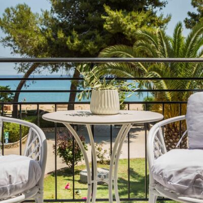 Direct aan een heerlijk strand, Loop naar heerlijke tavernes, Rustig, charmant dorp Skala, Verken het mooie Kefalonia, Prachtig uitzicht op de zee, Sfeervolle, gerenoveerde kamers & inclusief transfers.