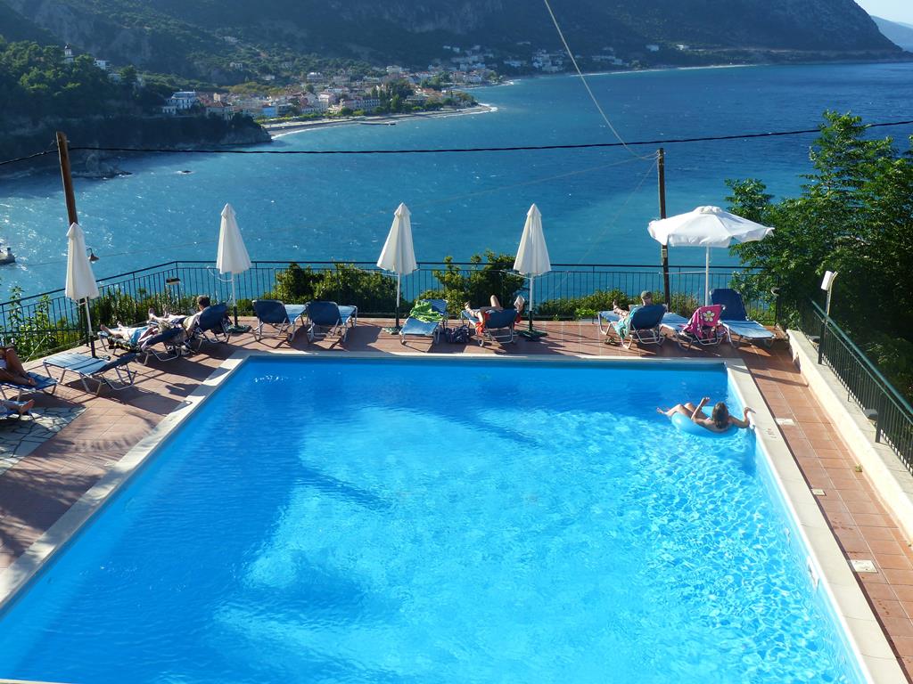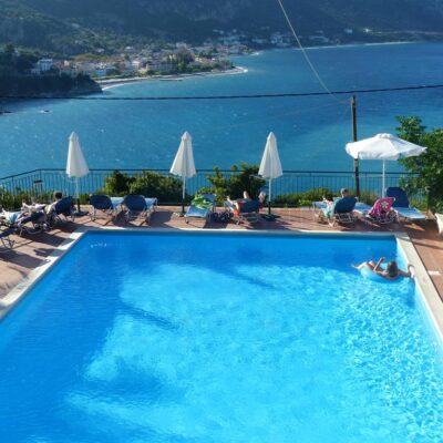 Dit hotel is een ideale uitvalbasis als je op zoek bent naar rust, zee en de groene natuur. Het hotel is gelegen op een berg en je hebt een goed uitzicht op de zee en de haven. De kamers zijn basic ingericht maar het uitzicht maakt een hoop goed. Terwijl jij geniet van een drankje aan het zwembad, bedenk jij alvast welke baaien je de volgende dag zeker niet mag missen. Visliefhebbers kunnen hun geluk niet op, vanuit het hotel loop je namelijk zo naar het vissersdorp. Hier kun je elke avond aanschuiven voor verse vis of een ander Grieks gerecht.