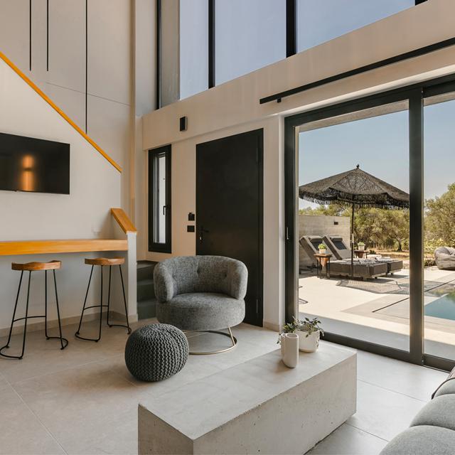 Toen ik de schuifdeur opendeed, stroomde het zonlicht gulzig naar binnen en onthulde een serene wereld van rust en eenvoud. De strakke lijnen, het zachte linnen op de bank en de dansende reflecties van het zwembad buiten – alles voelde perfect in balans. Het was alsof deze loft speciaal voor mij was ontworpen, met oog voor rustzoekers en liefhebbers van stijlvolle eenvoud. Onder de zwarte parasol vond ik mijn favoriete plekje: met een boek, een briesje en het uitzicht op wuivende bomen leek de tijd even stil te staan.