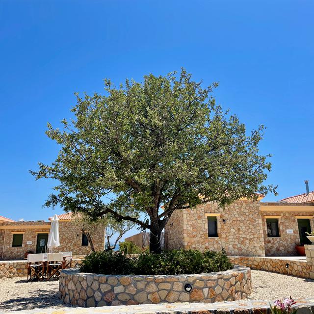 Toen ze plannen aan het smeden was om dit plekje te bouwen, kwamen ze op een stuk land terecht waar het enige wat er stond een wilde perenboom was. Ze doken in de geschiedenis van Sant' Agata en kwamen erachter dat het symbool van deze omgeving een wilde perenboom was. Dit was het moment waarop Ioanna realiseerde dat het voorbestemd was en ze haar droom van een eigen vakantieadresje moest volgen. En nu we hier in de schaduw van deze wilde perenboom zitten, deelt ze dit unieke verhaal met mij. Ik heb een vermoeden dat ik een bijzondere vakantie op Kefalonia tegemoet ga…