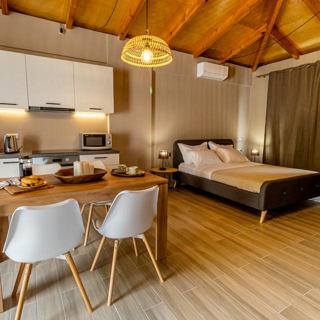 Na een lange reis arriveer ik bij Ulysses Gardens Villas en word ik meteen begroet door George en Evi, de eigenaren. Ze stralen zoveel enthousiasme uit over hun stukje paradijs dat ik me meteen welkom voel. Terwijl we door de tuin wandelen, vertelt Evi lachend dat dit de plek is waar ze hun droom hebben waargemaakt: een huis om gasten van over de hele wereld te verwelkomen. Ik kijk om me heen en zie het: de villa's liggen tussen olijfbomen, met een prachtig uitzicht over de zee en de bergen. Ik voel me hier zo gelukkig, in deze oase van rust, ver weg van de dagelijkse drukte.