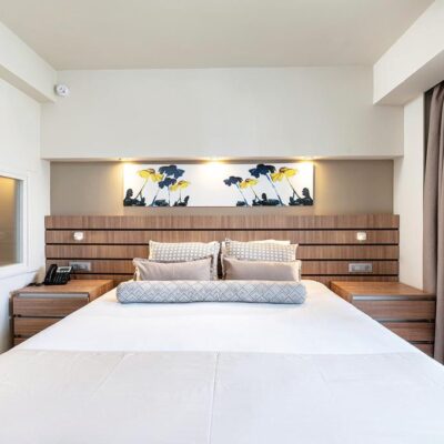 Dit stijlvolle strandresort ligt in het rustige Marmari, direct aan een heerlijk zandstrand. Vanuit je swim up kamer stap je zo het koele zwembad in. Lekker! De frisse mediterrane kleuren zorgen voor ultieme vakantiesfeer. Zin in actie? Ga tennissen of beachvolleyballen. Liever relaxen? Laat je verwennen in de spa of geniet bij het zwembad van een goed boek. De kinderen vermaken zich uitstekend. En 's avonds schuif je lekker aan voor heerlijke Griekse gerechten. Klinkt goed, toch?