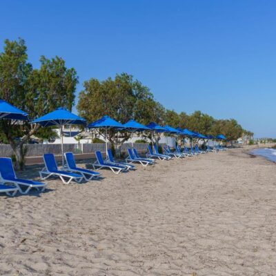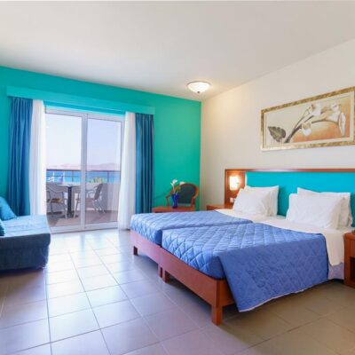 Geniet van een vakantie aan de kust van een Grieks eiland met prachtig uitzicht op zee. Vanuit je kamer kijk je uit op het blauwe water of de groene tuin. Leg je handdoek neer op het strand en geniet van een snack bij de strandbar. Voor een grotere maaltijd kun je terecht in het hoofdrestaurant, waar zowel lokale als internationale gerechten worden geserveerd. Verken de omgeving met een bezoek aan een heetwaterbron of geniet van een wijn en honingproeverij.