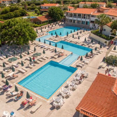 Aegean View Aqua Resort valt sinds kort onder nieuw management maar wat gelijk blijft: een schitterende ligging tussen de heuvels, met een adembenemend panoramisch uitzicht over het eiland en de Egeïsche Zee. Een paradijs voor het hele gezin met een aquapark met glijbanen en waterspellen met een 'Wipe-Out' baan. Neem een duik vanuit je kamer in het zwembad vanuit de Swim-up kamers, deze hebben direct toegang tot een gezamenlijk zwembad. De ruime kamers in leuke bungalowstijl zijn verspreid over het complex en omgeven door prachtige tuinen en fijne zwembaden. Geniet van houtoven gerechten en verse vis in de Griekse taverne of in het heerlijke Italiaans a la carte restaurant. Keuze genoeg. Optimaal genieten in het Aegean View Aqua Resort!