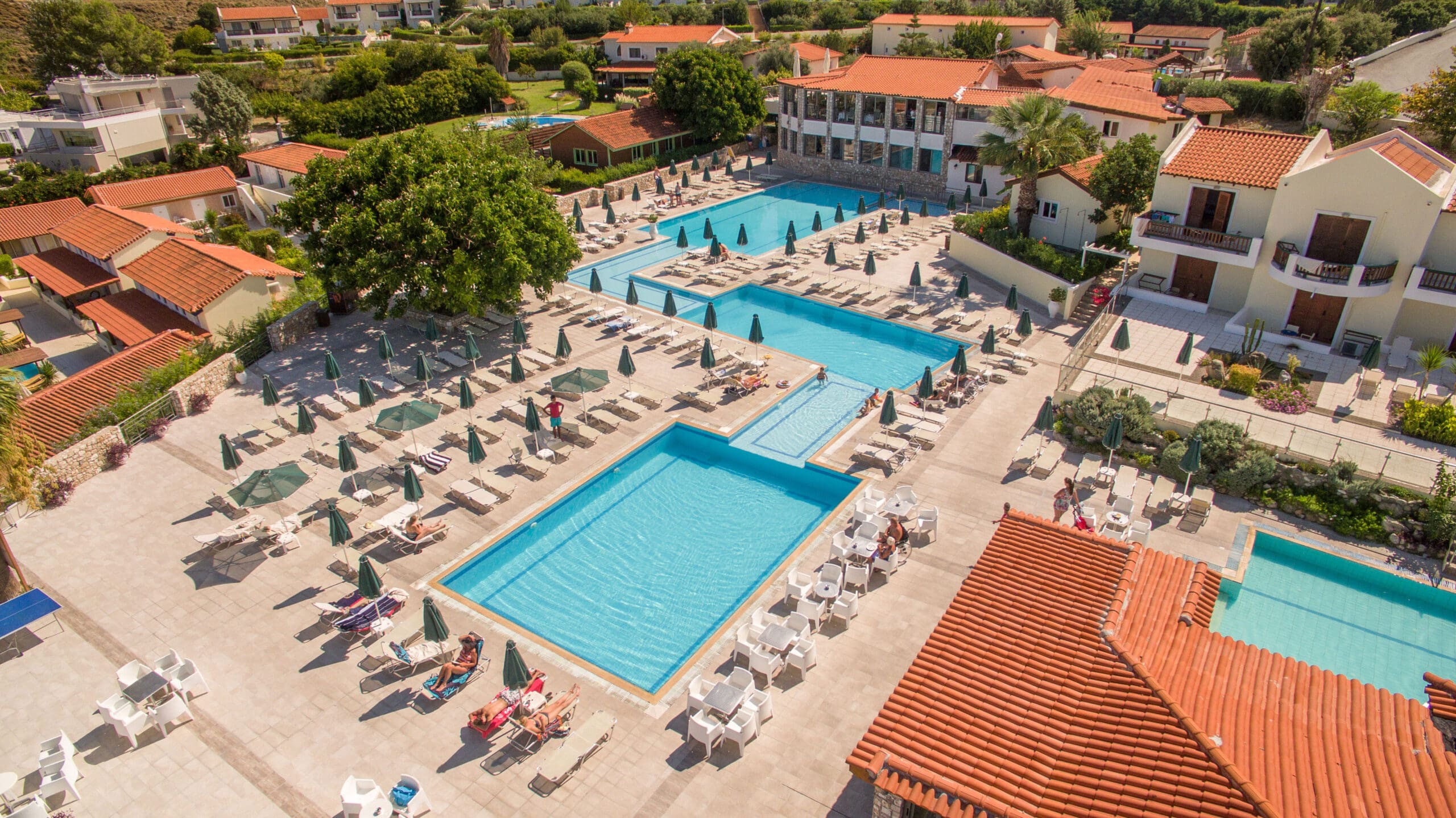 Aegean View Aqua Resort valt sinds kort onder nieuw management maar wat gelijk blijft: een schitterende ligging tussen de heuvels, met een adembenemend panoramisch uitzicht over het eiland en de Egeïsche Zee. Een paradijs voor het hele gezin met een aquapark met glijbanen en waterspellen met een 'Wipe-Out' baan. Neem een duik vanuit je kamer in het zwembad vanuit de Swim-up kamers, deze hebben direct toegang tot een gezamenlijk zwembad. De ruime kamers in leuke bungalowstijl zijn verspreid over het complex en omgeven door prachtige tuinen en fijne zwembaden. Geniet van houtoven gerechten en verse vis in de Griekse taverne of in het heerlijke Italiaans a la carte restaurant. Keuze genoeg. Optimaal genieten in het Aegean View Aqua Resort!