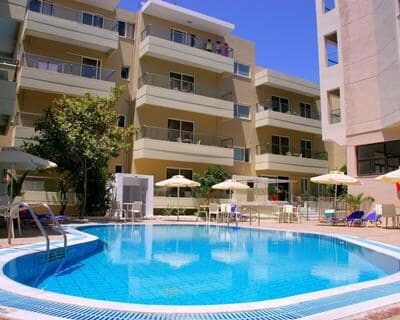 Slapen in ruime appartementen, Vlak bij het bruisende centrum, Wandel naar het Lambi zandstrand, Aanrader voor jong én oud, Haven Kos-stad op 350 meter, Gezellige en levendige omgeving & inclusief transfers.