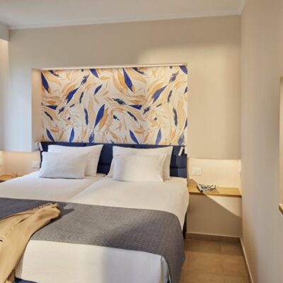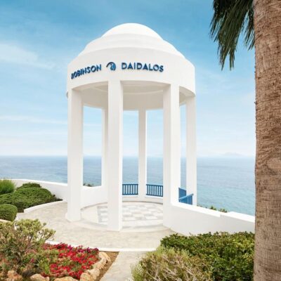 Spring in het zwembad op 60 meter boven de zee. ROBINSON DAIDALOS is op een klif gebouwd, de lift brengt je zo naar de Egeïsche Zee. Het is eigenlijk een klein dorp met smalle straatjes en kleurige en geurige bougainville. Waar je ook staat, het uitzicht op de Egeïsche Zee is hier altijd fijn. Hier heerst Poseidon, de Griekse God van de Zee. Door de lekkere wind op zee kun je altijd heerlijk zeilen en surfen. Elke kamer heeft een eigen balkon of terras, airconditioning, satelliettelevisie en vanuit de meeste kamers kijk je uit op de Egeïsche Zee. Dat is lekker wakker worden hoor….
