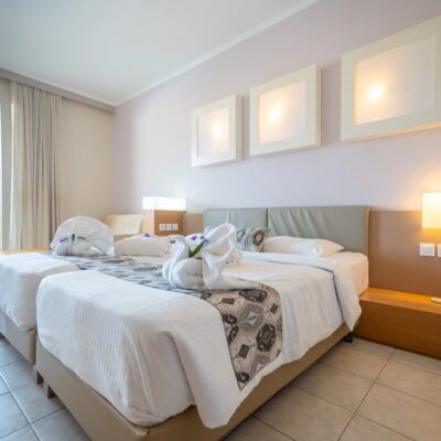Niet ver van het centrum van Kardamena ligt een fijn 5 sterrenhotel. Het hotel ligt direct aan het strand en heeft een mooi zwembad waar je de hele dag kunt ontspannen. Pak je boek erbij en kom helemaal tot rust. Wandel door de verzorgde tuin naar je eenvoudige maar comfortabele kamer. Trek een mooie outfit aan en schuif aan bij het diner. Na een goede maaltijd geniet je van een drankje op het terras of laat je je verrassen door een leuke show van het animatieteam.