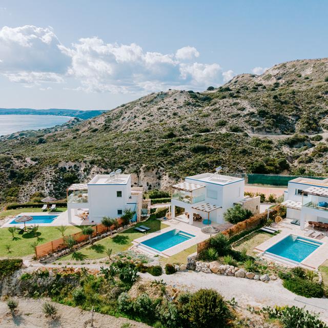 Royale privévilla's met zwembad, tuin én zeezicht;Binnenjacuzzi voor romantische avonden;Uitzonderlijk rustige ligging nabij Antimachia;Hartelijk ontvangst met lokale verrassingen van eigenaresse Ellie