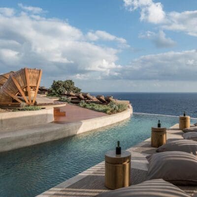 Ik had de tip gekregen om in de buurt van het pittoreske plaatsje Agia Pelagia eens te gaan overnachten in een boho-chique resort. Bij aankomst maak ik kennis met de goedlachse Konstantina. “Acros Suites is de beste benaming die je aan dit verborgen paradijs kon geven, Konstantina” Zij heeft mij net uitgelegd dat Acro aan de rand van betekent. En ik heb inderdaad het gevoel dat ik letterlijk aan de rand van de wereld sta. Ik weet van verbazing niet waar ik kijken moet. “Wat is het hier prachtig en wat hebben jullie een fantastische locatie uitgekozen.” Terwijl onder mij het zeewater met veel kracht tegen de rotsen slaat, geeft Konstantina mij de sleutel van mijn suite. Zie ik dat nou goed? De suite ligt letterlijk in de rotsen en geeft mij instant een gevoel van romantiek. De op maat gemaakte meubels, de stenen wanden, de balkondeuren van glas en alle natuurlijke materialen passen zo goed bij elkaar. Tevreden kijk ik vol geluk in het rond, dit is mijn thuis voor de komende nachten.