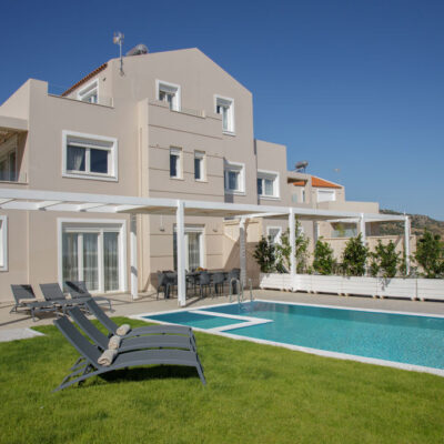 Blue Hills Villas biedt een rustige en stijlvolle setting in het groene landschap van Ammoudi en Lygaria, op korte afstand van Agia Pelagia. Je verblijft in een moderne villa met veel privacy, ruime woonkamers, volledig uitgeruste keukens en een eigen zwembad waar je in alle rust kunt ontspannen. De stilte van de heuvels gaat hier moeiteloos samen met de stranden in de buurt. Stap in je huurauto en rijd in korte tijd naar Lygaria Beach of het strand van Agia Pelagia. Wie Kreta verder wil ontdekken, zit hier ook goed. Binnen ongeveer twintig kilometer bereik je Heraklion en bekende plekken als het Minoische paleis van Knossos, ideaal voor een dag vol cultuur en geschiedenis. Of je nu op zoek bent naar rust, natuur of het echte Kreta gevoel, Blue Hills Villas biedt een fijne mix van luxe, vrijheid en comfort. Geniet van het uitzicht over heuvels en zee en ervaar het eiland op je eigen tempo vanuit je privé villa.