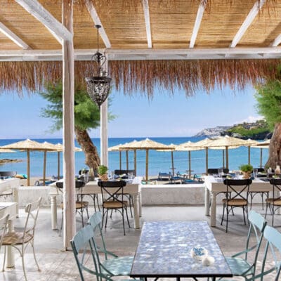 Het Out of the Blue Resort ligt tussen een uitgestrekt en groen privé-schiereiland en laat gasten kennismaken met een prachtig toevluchtsoord van luxe, leuke entertainment en gastvrijheid. Het prachtige resort kijkt uit op eindeloze azuurblauw uitzicht en biedt verschillende accommodaties aan. Van familiebungalows tot luxe suites en 3 villa's met een eigen privézwembad, elk verblijf is op maat gemaakt om van uw vakantie uw favoriete zomerherinnering te maken. Heerlijke gastronomie belooft je mee te nemen op een reis door ongelooflijke smaken, talloze zwembaden bieden eindeloos plezier terwijl watersporten geschikt zijn voor de adrenalineliefhebbers. Kinderen kunnen veilig rondlopen en naar hartenlust spelen terwijl ze oog in oog komen te staan met de oogverblindende geschiedenis van het eiland in het Minoan Amusement Park. De uitzonderlijke spaservices van Out of the Blue Resort zijn ook beschikbaar, en beloven u van binnenuit te verjongen, terwijl de eindeloze avondentertainment u inleiden op een onvergetelijke vakantie met de onbetwistbare allure van Kreta.