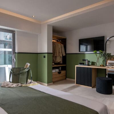 Gelegen in het hart van het levendige stadscentrum en dicht bij de meest bekende stranden van Agios Nikolaos, heeft Mistral Bay Hotel de ideale uitvalsbasis. Op slechts een paar minuten lopen vind je het pittoreske Lake Voulismeni, de belangrijkste bezienswaardidheid van de stad. Volgens de mythologie baadde hier vroeger godin Athena en is het meer bodemloos. Tegenwoordig is het omgeven door vissersbootjes, taverna’s en gezellige terrasjes. Slenter ook eens door de idyllische straatjes van de stad of bezoek een van de diverse kerkjes, zo proef je echt de authentieke Griekse sfeer. Ontspan je liever in het hotel? Dit doe je bij de exclusieve Rooftop bar. Zonnebaden kan hier vanaf vroeg in de ochtend onder het genot van een verfrissend drankje en in de avonduren bewonder je de magische sterrenhemel. En wat dacht je van het adembenemende panoramische uitzicht over de Golf van Mirabello, de populaire plaats Elounda en het eiland Spinalonga? Kortom, Mistral Bay Hotel is dé ideale plek voor een veelzijdige vakantie op Kreta.