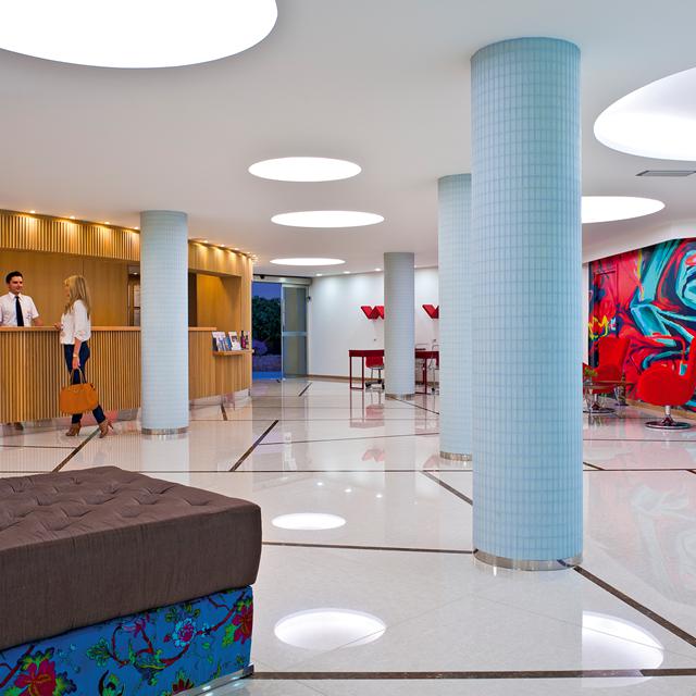 Het resort bestaat uit 2 gebouwen en zijn verbonden door een glazen loopbrug. De brug zorgt voor een makkelijke toegang tot alle delen van het hotel. De kamers zijn trendy en licht ingericht en deze bevinden zich in het gebouw ‘Star’ op ongeveer 250 meter van het strand. Ook fijn is dat er 2 zwembaden zijn, waarvan 1 speciaal voor kinderen is.