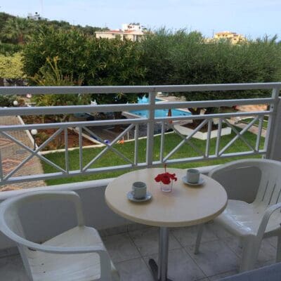 Appartementen Nikolas Villas is rustig gelegen in een mooi aangelegde tuin met verschillende soorten bomen en kleurrijke, geurende bloemen. De sfeer is heel relaxed en je komt hier heerlijk tot rust. Bij het zwembad staan er ligbedjes met parasols, heerlijk om een dagje te luieren en te genieten van alle vrije tijd.
