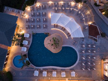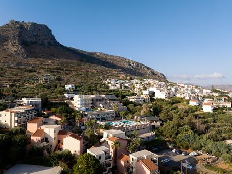 Het kleurrijke appartementencomplex ligt op de grens van de pittoreske plaatsen Piskopiano en Koutouloufari. Zo heb je het beste van twee werelden. De appartementen zijn trapsgewijs op een heuvel gebouwd. Een dagelijkse korte workout inclusief prachtig uitzicht over het lager gelegen Chersonissos is het resultaat. Eenmaal op je ruime kamers vind je alle nodige faciliteiten. De pannen kun je eventueel laten staan, want halfpension boek je gewoon bij. Wel zo makkelijk! Dan eet je hier 's avonds onder de sterren. En anders vind je in het gezellige centrum een ruime keuze aan tavernen voor heerlijke meze. Zo hoort een vakantie te zijn.