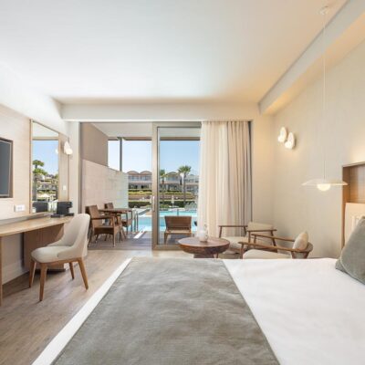 Kijk dat enorme zwembad eens… Er staan genoeg bedjes klaar om lekker uit te rusten, wat je afwisselt met baantjes trekken. Heb je dorst gekregen? De barman van de poolbar staat voor je klaar. Steek de straat over en staat zo op het Kolimbari strand. Even met je voeten in het zand… Aan de innerlijke mens wordt hier goed gedacht. De maaltijden en drankjes zijn All Inclusive. Wat is vakantie vieren toch fijn.