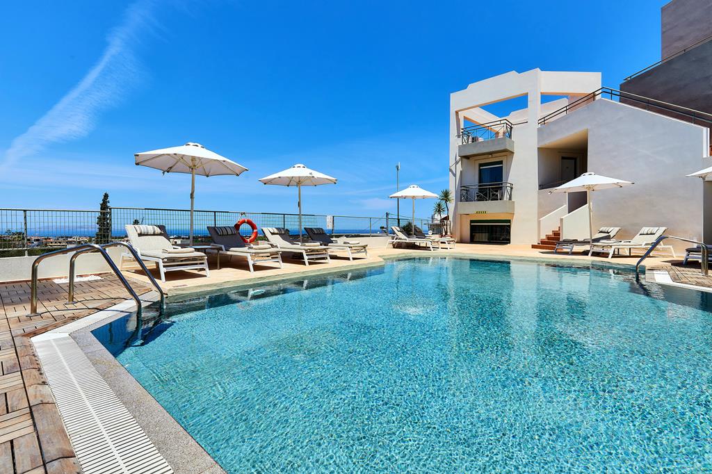 De service komt uit het hart, Kleinschalig complex, Dichtbij Oud-Chersonissos, Afkoelen in het zwembad, Rustig gelegen, Mooi uitzicht & inclusief transfers.