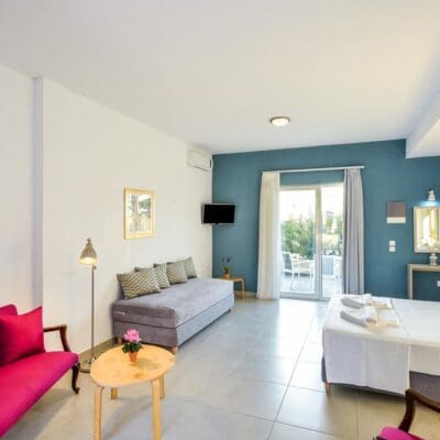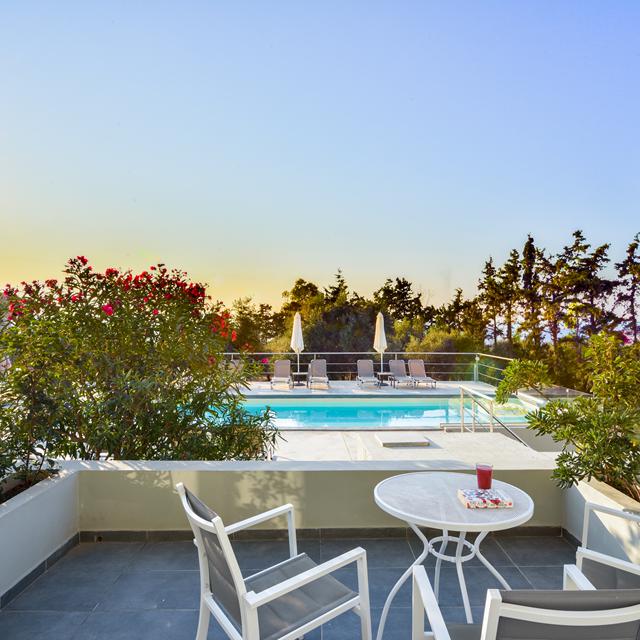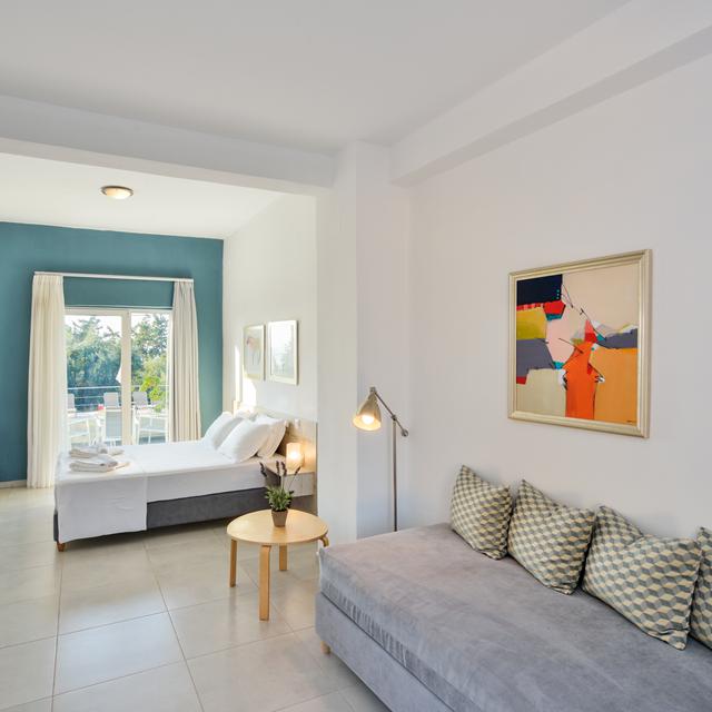 Warme, persoonlijke sfeer;Vlak bij strand én het levendige Chania, in een rustige, groene omgeving;Stijlvolle, lichte appartementen met kitchenette, airco, privéterras en uitzicht op zee of tuin;Charmante huiskat – geliefd bij jong en oud