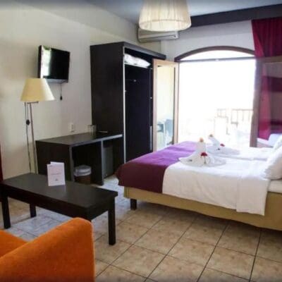 Waarom een Fly & Go vakantie? * Gemak voorop: pakketreis met vlucht + deze accommodatie + huurauto * De verzekering voor je auto is geregeld * Vrijheid en avontuur: ontdek in je eigen tempo je vakantiebestemming Alvast sfeer proeven? Lees snel onze insidertips (https://www.corendon.nl/inspiratie/geo/kreta/) Almyrida Village & Waterpark is de ideale uitvalsbasis voor een ontspannen en veelzijdige vakantie in het rustige dorpje Almyrida op Kreta. Dit gezinsvriendelijke resort combineert comfort met een fantastische ligging, op slechts 500 meter van het zandstrand. Het complex biedt een groot buitenzwembad met glijbaan en een kinderbad 2 glijbaantjes waar de kleintjes zich eindeloos kunnen vermaken. Voor de ultieme ontspanning geniet je van een verkoelend drankje bij de poolbar, terwijl je uitkijkt over het prachtige landschap. Met je huurauto kun je in alle vrijheid de omgeving ontdekken. Bezoek het charmante dorpje Kalives, dat op slechts 5 kilometer afstand ligt, of rijd naar de bruisende stad Chania, bekend om haar Venetiaanse haven, smalle steegjes en sfeervolle terrasjes. Ook de indrukwekkende natuur van Kreta, met haar schilderachtige baaien en groene bergen, ligt binnen handbereik. Na een dag vol avontuur schuif je aan in het buffetrestaurant, waar heerlijke lokale gerechten op je wachten. Of je nu komt om te ontspannen, te ontdekken of van alles een beetje, bij Almyrida Village & Waterpark heb je alles wat je nodig hebt voor een vakantie om nooit te vergeten!