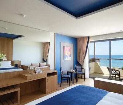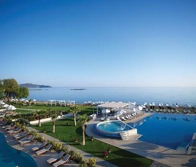 Een hotel dat hoge ogen gooit bij zijn klanten. De service is hoog en het personeel staat graag voor je klaar. Dompel je onder in het Griekse leven en laat je hier verwennen. In de spa boek je een ontspannen massage en ’s avonds kies je bij welk restaurant je gaat aanschuiven. De ligbedjes aan het zwembad en op het strand staan voor je klaar. Drankje erbij en je leest zo dat ene boek in één keer uit.