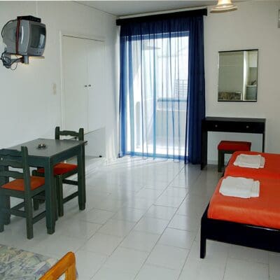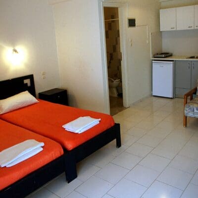 Zin in een bruisende vakantie in gezellig Chersonissos? Kies dan voor een verblijf in Klery Studios. Tegen een superscherpe prijs verblijf je hier op slechts 30 meter van het strand. In de directe omgeving vind je talloze restaurants, bars en winkels, genoeg te doen dus. Overdag rol je je handdoekje uit op het strand en tussendoor bestel je een lekkere homemade snack bij de Klery snackbar. Ook voor een verkoelend drankje kun je hier terecht. ’s Avonds liggen de leukste uitgaansgelegenheden op loopafstand. Genoeg te doen dus! Zien wij je hier snel vakantie vieren?