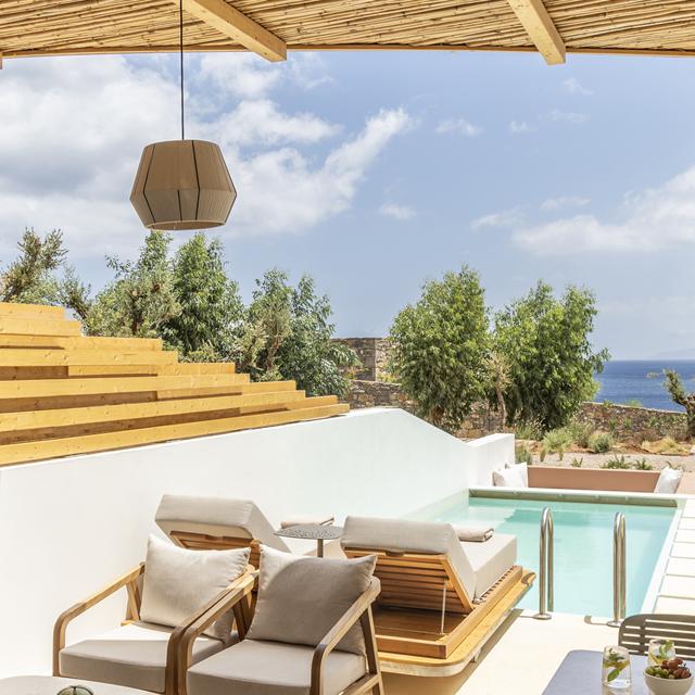 Adults only (13+);Suite met privézwembad;Moderne en stijlvolle inrichting;Prachtig uitzicht op de zee;Gezelligheid binnen handbereik
