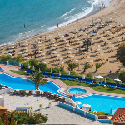 Het Fodele Beach & Water Park Holiday Resort is een uitstekend 5-sterren All Inclusive hotel met een eigen waterpark op de top van de heuvel. Terwijl je heerlijk op uw gemak geniet van de Griekse gastvrijheid zullen de kinderen zich optimaal vermaken met maar liefst 7 glijbanen of bij de leuke miniclub. Kortom: Fodele Beach & Water Park Holiday Resort biedt genoeg faciliteiten voor het hele gezin en is een absolute aanrader!