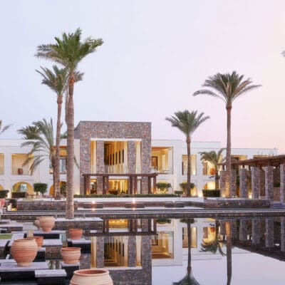 Grecotel Amirandes Resort werd gebouwd in de stijl van een Minoïsch paleis en is rustig gelegen aan een zandstrand op slechts 2 kilometer van het charmante Gouves op Kreta. Het is een aantrekkelijke uitvalsbasis voor wie op zoek is naar een ontspannen vakantie. Geniet van het olympisch zwembad met een prachtig uitzicht op de glinsterende zee, waar je een verfrissende duik neemt en ontspant onder de stralende Griekse zon. De kamers van Grecotel Amirandes Resort zijn stijlvol en bieden een comfortabele plek om tot rust te komen na een dag vol avontuur. Het resort beschikt over maar liefst zeven restaurants. Of je nu zin hebt in lokale Griekse specialiteiten, mediterrane gerechten, of internationale smaken, er is voor elk wat wils. Dit resort heeft ook een scala aan faciliteiten om je verblijf nog aangenamer te maken, waaronder een spa, watersportmogelijkheden en een afwisselend entertainmentprogramma. Grecotel Amirandes Resort biedt een perfecte balans tussen ontspanning en vermaak voor een onvergetelijke vakantie op Kreta.
