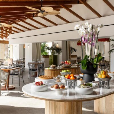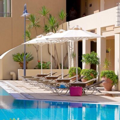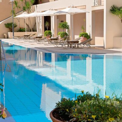 Witte huisjes met blauwe details en groene tuinen vormen het decor voor je vakantie. Je ploft neer bij een van de zwembaden – inclusief kinderbaden en een binnenbad voor schaduwmomenten. Met een fitnessruimte en spa met sauna en hamam heb je alle comfort binnen handbereik. In Della Casa geniet je van het buffet met Kretenzische en internationale gerechten. Liever rustig? Bij Casa Cappuccino aan het water proef je Griekse en Italiaanse klassiekers. Relaxed, zonnig en heerlijk ongedwongen – precies wat je zoekt.