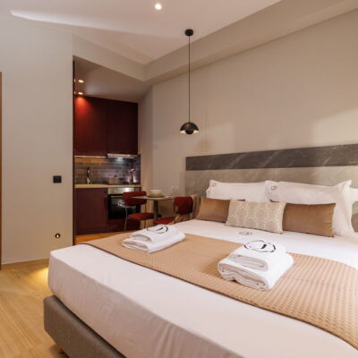 Waarom een Fly & Go vakantie? * Gemak voorop: pakketreis met vlucht + deze accommodatie + huurauto * De verzekering voor je auto is geregeld * Vrijheid en avontuur: ontdek in je eigen tempo je vakantiebestemming Alvast sfeer proeven? Lees snel onze insidertips (https://www.corendon.nl/inspiratie/geo/kreta/) Voor wie houdt van de luxe van een hotel maar de privacy van een eigen woning waardeert, is Jolly Suites een uitstekende keuze. Gelegen in Heraklion biedt dit complex stijlvolle accommodaties die van alle gemakken zijn voorzien. De inrichting kenmerkt zich door een moderne, minimalistische stijl met warme accenten, waardoor elke suite aanvoelt als een exclusief toevluchtsoord midden in de stad. Een groot pluspunt is de volledig uitgeruste keuken in elk appartement. Met voorzieningen zoals een oven, broodrooster en koffiezetapparaat begin je elke ochtend met een vers kopje koffie in je eigen tempo. Voor reizigers die wat langer blijven, biedt de aanwezige wasmachine een fijne uitkomst. Het verblijf is zo ingericht dat het je aan niets ontbreekt, of je nu een snelle stedentrip maakt of langer op Kreta verblijft. De locatie nodigt uit om de omgeving te verkennen. Je bevindt je op loopafstand van lokale hotspots zoals Athena Food & Coffee voor een lekker ontbijt buiten de deur. Ook culturele hoogtepunten liggen binnen handbereik. Na een dag struinen door de straten van Heraklion is er niets fijner dan terugkeren naar je koele suite. Je sluit de dag ontspannen af in de comfortabele zithoek of op je privéterras.