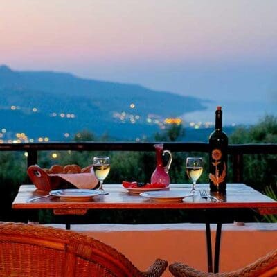 Samen lopen we door de tuin naar mijn kamer. De authentieke Griekse stijl komt in de inrichting terug, geheel in stijl van het oude gebouw. Mijn oog valt meteen op het hemelbed die middenin de kamer staat. Snel zet ik mijn spullen neer en ga ik het terrein verkennen. Een paadje leidt mij naar een bijzondere boom, namelijk de oudste olijfboom ter wereld. Hij staat hier al minimaal 4000 jaar en zorgt voor een bijzonder gevoel. Verderop zie ik het zwembad liggen. Dat ziet er wel heel verleidelijk uit…