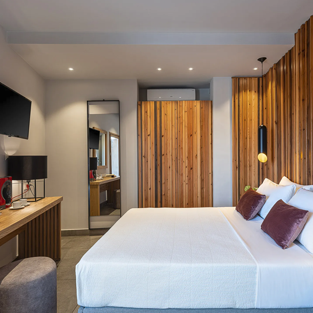 De kamers zijn modern en comfortabel ingericht, met warme kleuren en natuurlijke materialen. Overal voel je de rustige, minimalistische stijl die goed past bij de levendige omgeving buiten. Elke ochtend begint met een vers ontbijt in de lichte ontbijtruimte, waarna je zo de stad in wandelt. Denk aan slenteren langs lokale markten of genieten van een koffie aan de haven. Je verblijft hier letterlijk in het hart van Chania. Bezienswaardigheden, winkels en restaurants liggen op loopafstand. Ook het strand bereik je eenvoudig, ideaal om lekker even af te koelen in de heerlijke zee na een dag voor mooie indrukken.