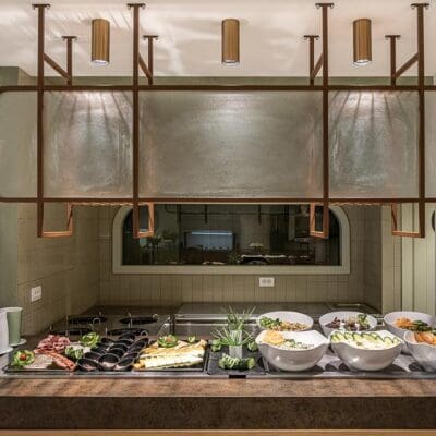 Overnachten doe je in fijne kamers met een knus comfort. Voor net een beetje extra luxe zijn er ook kamers met een privé zwembad. Ook de culinaire verwennerij staat centraal; van een energie vol mediterraan ontbijt tot traditionele Griekse gerechten plus internationale klassiekers bij de lunch en het diner. In het gezellige à-la-carterestaurant wordt alles bereid met lokale ingrediënten, zodat je de Griekse keuken goed leert kennen. Tussendoor zijn er heerlijke drankjes en snacks beschikbaar, ideaal voor een lichte verfrissing na een zonnige dag.