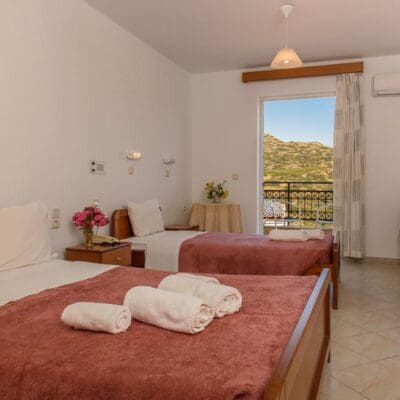 Hotel Melissa is prachtig gelegen. Wanneer je aankomt zal een heerlijk vakantiegevoel je overvallen. Hier kun je goed tot rust komen in de komende dagen of weken! ’s Morgens maak je een wandeling in deze mooie omgeving naar het strand en na een paar uur zonnen is het zeker een aanrader het sfeervolle plaatsje Matala te bezoeken. Probeer hier een smaakvolle lunch in één van de restaurantjes. De sfeer en de vriendelijke mensen in Matala maken de dag al helemaal goed. Ook in Hotel Melissa zal de vriendelijke familie proberen de vakantie zo goed mogelijk te laten verlopen.