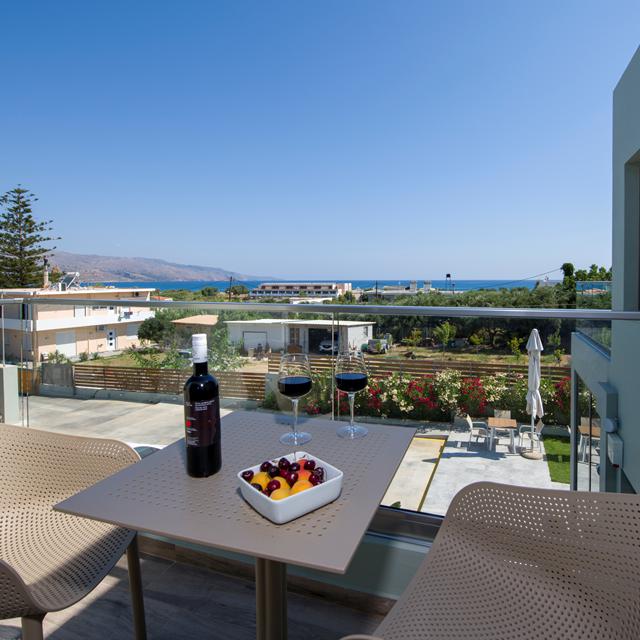 Na een verfrissend drankje op het terras, laat Xanthi mij mijn studio zien. Deze ziet er ruim en comfortabel uit. Wat hebben jullie het mooi en verzorgd ingericht. Ik schuif de deuren open van mijn balkon en zie in de verte de zee liggen. Het is prachtig Xanthi, dit is echt de perfecte plek om 'incognito' op Kreta te verblijven, zeg ik met een knipoog.