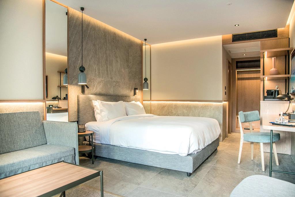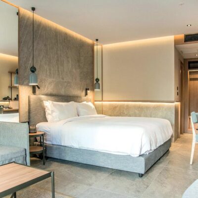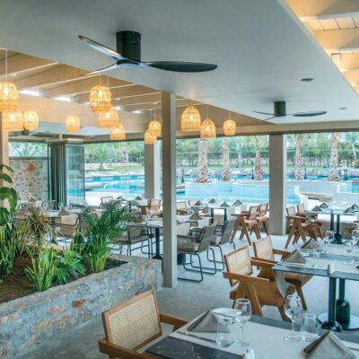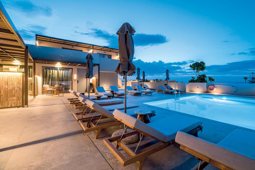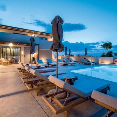 Moderne architectuur en rust komen hier helemaal samen witgekalkte muren, warme stenen en weelderige tuinen vormen dit hotel als een harmonieus geheel. Neem een duik in het zwembad tijdens de warme middaguren of laat je verwennen in de spa met lokale oliën en kruiden. In het restaurant proef je Kreta lokale ingrediënten met een mediterrane twist. De gouden stranden liggen op minuten afstand en in Chersonissos bruist het nachtleven. De kamers variëren van charmante doubles met tuinzicht tot familiekamers met privézwembad of luxe suites met buitenjacuzzi.
