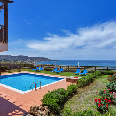 Vasia Villas is een fijne plek voor wie op zoek is naar rust, ruimte en een prachtig uitzicht. Deze drie moderne villa's liggen net buiten het charmante vissersdorpje Milatos en bieden alles voor een ontspannen vakantie op Kreta. Elke villa heeft een privézwembad, een ruim terras met ligbedden en een comfortabel interieur met oog voor detail. Of je nu op het terras zit met een goed boek of afkoelt in het zwembad, hier geniet je volop van privacy en comfort. Binnen een kilometer sta je al in de haven van Milatos, een klein en sfeervol dorp waar vissers dagelijks hun vangst binnenhalen. Langs de kust vind je een paar gezellige tavernes waar je verse vis kunt proeven, en iets verderop in het hoger gelegen dorpje Milatos kun je dwalen door smalle straatjes met witgekalkte huisjes en genieten van authentieke Griekse gerechten tegen vriendelijke prijzen. Ook in de omgeving valt genoeg te ontdekken. Bezoek bijvoorbeeld Plaka, een charmant dorp op zo'n 30 kilometer afstand, met uitzicht op het eiland Spinalonga dat je eenvoudig per boot kunt bereiken. Of rij richting Agios Nikolaos voor een dagje winkelen en flaneren langs de gezellige boulevard. Of je nu graag de rust opzoekt of eropuit trekt, vanuit Vasia Villas ervaar je Kreta op zijn best.