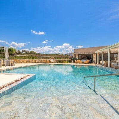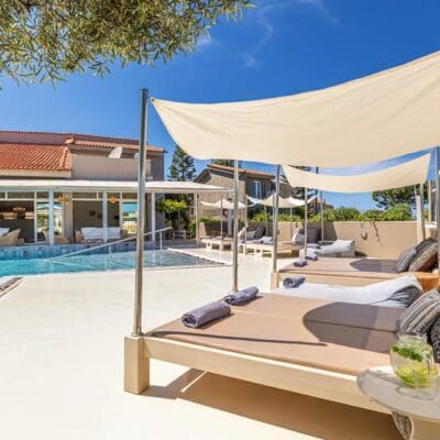 De twaalf stijlvolle, luxe villa's lagen rustig op de berghelling naar de zee en de bergen te kijken. 's Avonds laat kwam ik aan en het paradijselijke avontuur begon direct. Ik danste bijna letterlijk door mijn stijlvolle villa langs de open keuken, de trendy woonkamer, de open haard, mijn slaapkamer boven waar het moderne hemelbed prijkte, in de badkamer borrelde de jacuzzi van geluk. Mijn ogen kwamen tijd te kort dankzij alle details die ook tot in perfectie waren doorgevoerd. Zachte muziek klonk door de cinemaset en toen gebeurde het: ik opende de deur naar mijn tuin waar de lichtjes zacht mijn privézwembad verlichtten. 'Ik heb Eleni gevraagd of de kok nog wat eten wilde maken', lachte Jorgos. En hij wees naar het goddelijke maal op tafel. 'Gastvrijheid krijgt hier een nieuwe definitie!'