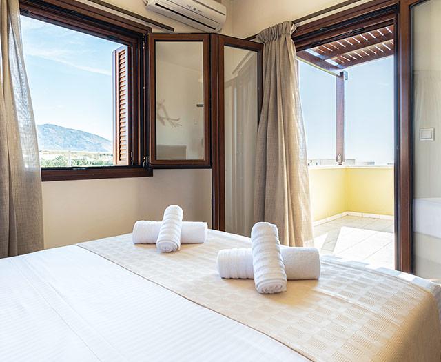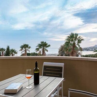 Ik krijg nooit genoeg van die typisch Griekse wegen. De ene keer rijd ik langs de zee, het volgende moment slinger ik door de bergen – altijd met prachtige uitzichten. Deze oostkant van Kreta voelt nog heerlijk ongerept, met kleine baaitjes en rustige dorpjes. Onderweg naar Makrigialos voel ik het vakantiegevoel al in mijn buik kriebelen, en dat wordt alleen maar sterker zodra ik aankom bij Pearls of Crete. De geur van de zee, het geritsel van palmbomen en het warme welkom van eigenaar Giorgos maken dat ik me meteen thuis voel. Op het terras, met een glas verse salie in mijn hand, luister ik naar de verhalen van zijn jeugd hier. Het voelt alsof ik deel uitmaak van hun familie.