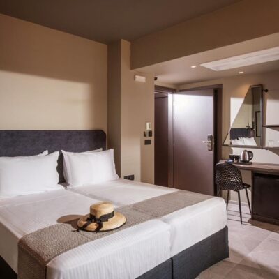 Met het zand tussen je tenen binnen enkele minuten? Dat kan bij dit hotel in het gezellige Amoudara op Kreta. Je dag begint met een feestje voor je smaakpapillen bij het verse ontbijtbuffet, waarna je zonnestralen vangt bij het zwembad. De kinderen? Die zoeven van glijbanen, ontdekken geheime tunnels en maken salto's op trampolines in de schaduwrijke speeltuin. En als je maag begint te knorren, wacht het naastgelegen restaurant waar al 40 jaar culinaire Kretenzische magie wordt gecreëerd. Het karakteristieke interieur fluistert verhalen van vroeger terwijl jij geniet van elke heerlijke hap.