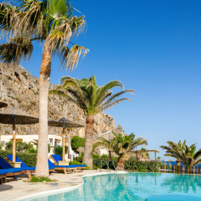 Welkom in één van de meest zuidelijk gelegen hotels van Europa! Welkom in Kalypso Cretan Village Resort & Spa. Dit 4-sterrenhotel met nieuw management heeft een unieke en schitterende ligging ingeklemd tussen de Middellandse Zee en hoge verticale, overhangende rotswanden waar via een verborgen zeearm, die vroeger door piraten als schuilplaats werd gebruikt, het zeewater binnenstroomt om te eindigen op een klein zandstrand. Bij aankomst waan je je direct in een andere wereld. De vrolijke kleuren van de gebouwen steken scherp af tegen het rotsdecor en de palmbomen geven je misschien wel hét ultieme vakantiegevoel. Plof neer op een ligbedje, duik in één van de mooie zwembaden, geniet van het fantastische uitzicht op zee en neem eens een duikles om de bijzondere onderwaterwereld te ontdekken. De unieke locatie leent zich perfect voor spannende sporten. Wat dacht je van klimmen, abseilen, wandelen, mountainbiken en een volop genieten van traditioneel Grieks eten en entertainment.