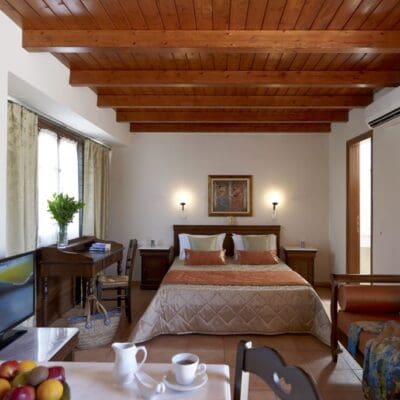 Ontdek Palazzo Vecchio Exclusive Residence, een klein, romantisch en prachtig ingericht hotel in Rethymno op Kreta. Gelegen aan de rustige kant van het oude centrum van Rethymnon, onder het Venetiaanse fort "Fortezza", op 50 meter van de Middellandse Zee. Dit hotel biedt een aangename en comfortabele uitvalsbasis voor reizigers die willen genieten van de schoonheid van de Kretenzische kust. Palazzo Vecchio Exclusive nodigt je uit om te ontspannen aan de kust van Rethymnon, een stad die doordrenkt is met geschiedenis en charme. Wandel door de smalle straatjes van de oude binnenstad, bewonder de Venetiaanse architectuur en geniet van lokale lekkernijen in de sfeervolle tavernes. Rethymnon biedt een perfecte mix van cultuur en ontspanning, met zijn levendige markten en gezellige boulevard. Het hotel zelf belooft een comfortabel verblijf, direct aan het strand, waar je kunt genieten van de zon en de zee. Palazzo Vecchio Exclusive en Rethymnon vormen samen een ideale combinatie voor jouw welverdiende vakantie op het prachtige eiland Kreta.