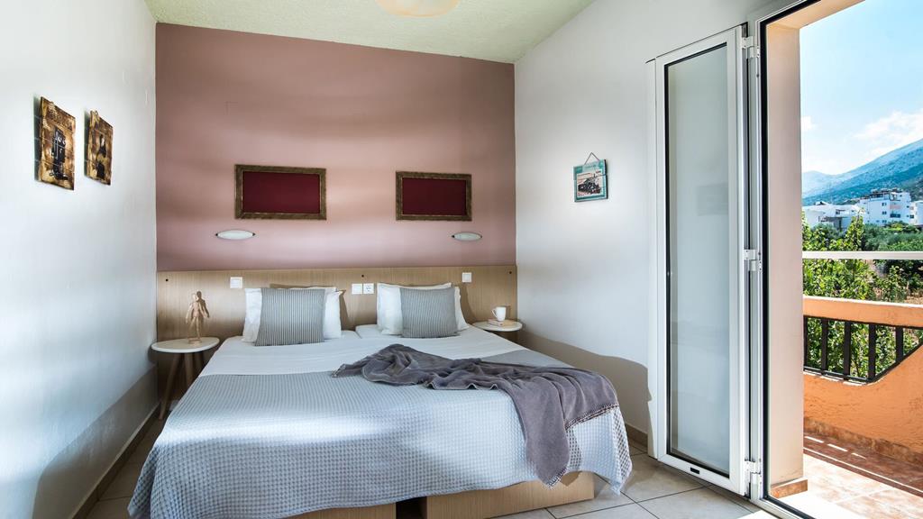 Dorpgevoel midden in Malia, Zwembad omgeven door tuin, Heerlijke gerechten in het restaurant, Vlak bij Malia Strip, Charmante kamers vol comfort, Ontdek Malia met de fiets & inclusief transfers.