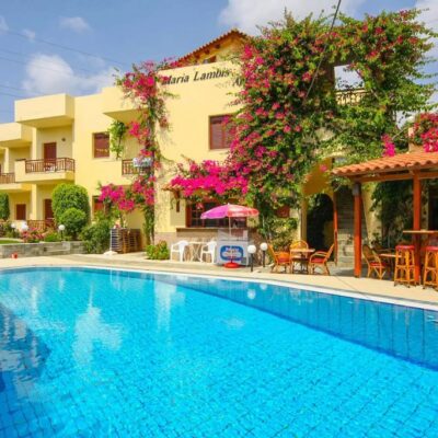 Maria Lambis Apartments is een gezellig appartementencomplex op Kreta, gelegen op loopafstand van het strand. Dit hotel biedt comfortabele kamers en een zwembad waar je kunt ontspannen in de zon. Het restaurant serveert heerlijke gerechten, zodat je optimaal kunt genieten van de Griekse keuken. Het levendige centrum van Stalis ligt op slechts 300 meter afstand, waar je diverse tavernes, bars en winkeltjes kunt vinden. Hier kun je zowel ontspannen als het Griekse nachtleven verkennen. Stalis is een charmante badplaats aan de noordkust van Kreta, geliefd om zijn lange zandstranden en ontspannen sfeer. Het dorp biedt een ideale mix van rust en gezelligheid, waardoor het een perfecte bestemming is voor zowel gezinnen als stelletjes. Naast het strand kun je in de omgeving van Stalis genieten van wandelingen in de natuur, oude dorpjes bezoeken of een excursie maken naar het bruisende Malia of de historische stad Heraklion. Het is een uitstekende uitvalsbasis om het prachtige eiland Kreta verder te verkennen!