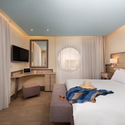 Waterpret staat hier centraal. Duik in de zwembaden, glijd van de glijbanen en geniet van onbeperkt waterplezier met All Inclusive. Op het ruime terrein vind je diverse bars en restaurants voor lunch en diner. Een klein strand vormt een aangename afwisseling op de zwembaden. De moderne, ruime kamers bieden comfort voor gezinnen én stellen. Hier komt iedereen tot rust na een dag vol avontuur. De kinderen vermaken zich in de miniclub terwijl jij geniet van een drankje bij het zwembad. In de avond zorgt het animatieteam voor entertainment en geniet je van lokale en internationale gerechten in de restaurants. De perfecte mix van actie en ontspanning voor een onvergetelijke vakantie.